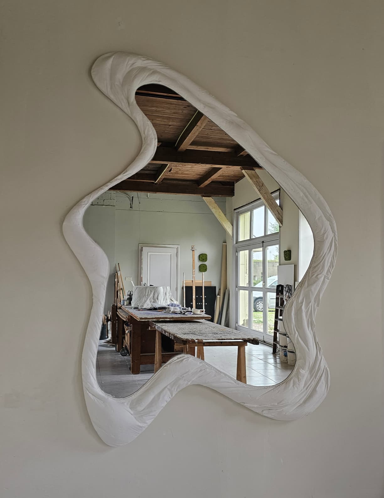 Wobbly XL Mirror features a frame molded into a playful and irregular shape, inspired by natural mud pool formations. This mirror celebrates individuality, encouraging self-expression, and reminds us that embracing our quirks can lead to something truly extraordinary